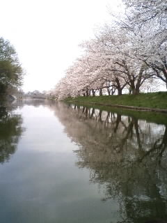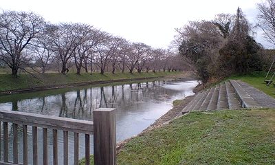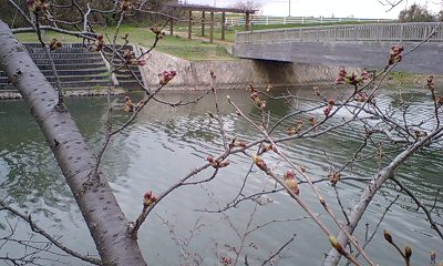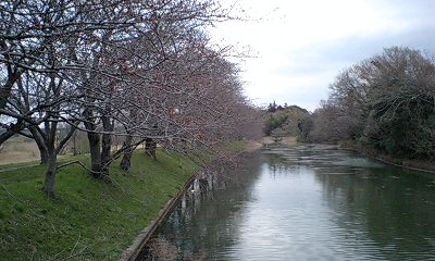 で、福岡堰の桜の様子。