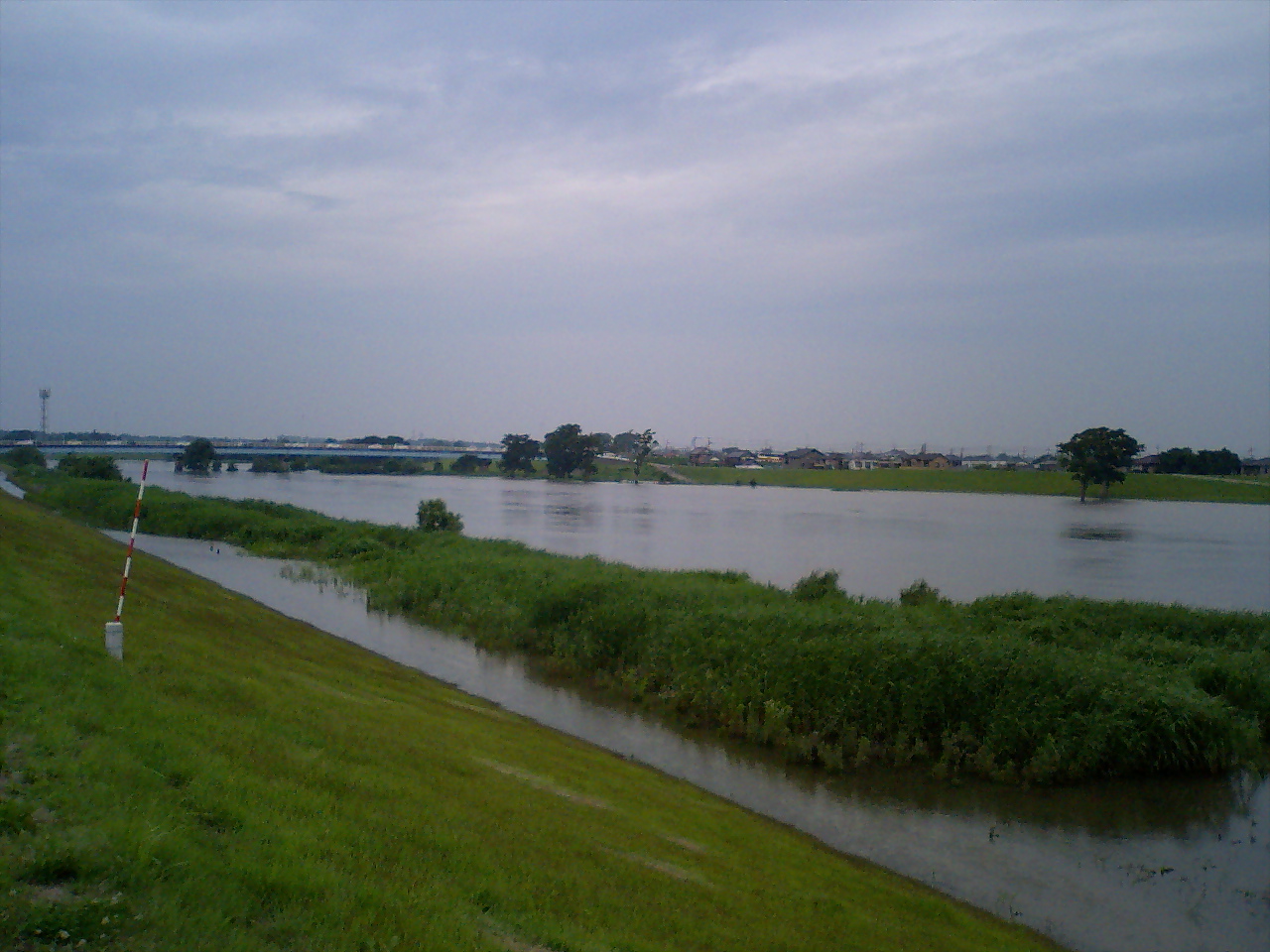 NPO小貝川プロジェクト21さんのマウンテンバイクコースあたり。高くなっている部分だけが島になっています。
